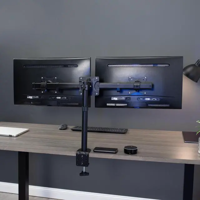Create double the viewing experience with the VESA Adapter Bracket for 2 Monitor Screens (MOUNT-VW02A) from VIVO! This adapter bracket is designed to connect to a VESA single monitor mount so you can mount two screens (weighing up to 22 pounds each) rather than one (Please note that MOUNT-VW02A does not come with the stand/base or VESA plate which must be purchased separately). Monitors are mounted on a curved rail that can be moved from side to side without any tools and can be tilted 45 degrees in each direction to create proper ergonomic viewing angles. Open slots at the top of the mounting bracket make attaching your monitors incredibly easy. Cable clips are included on each side of the mount to keep cords organized and protected. This curved bracket is simple to assemble, features VESA 75x75mm and 100x100mm hole patterns, and comes with all mounting hardware.