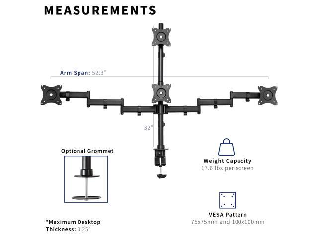 Fits up to 24" Screens: This quad mount holds four screens up to 24" and 17.6 lbs each with 75x75mm and 100x100mm VESA mounting holes