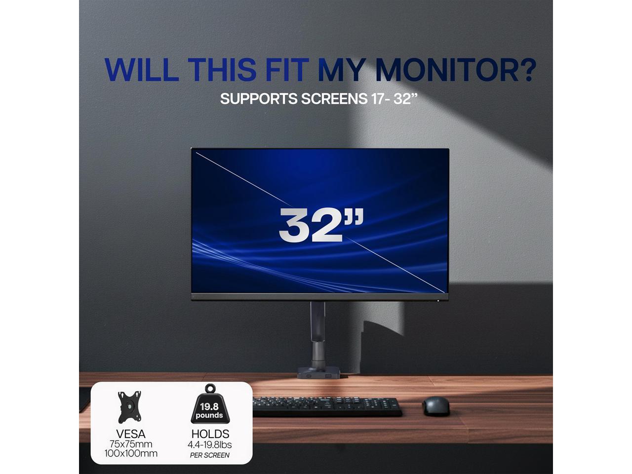 Fits 17" to 32" Screens: Universally compatible with most 17" to 32" flat and curved screens weighing from 4.4 lbs to 19.8 lbs with VESA 75x75mm or 100x100mm mounting patterns