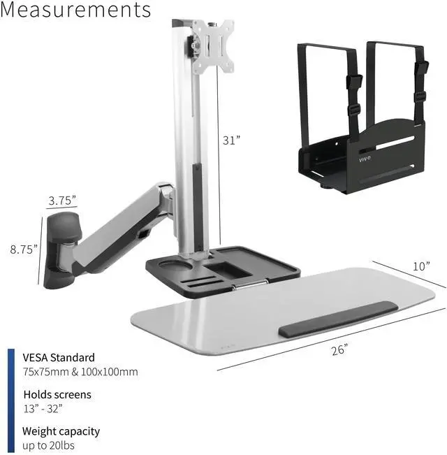 - Built to hold one screen up to 32". The detachable VESA plate makes monitor installation a breeze.