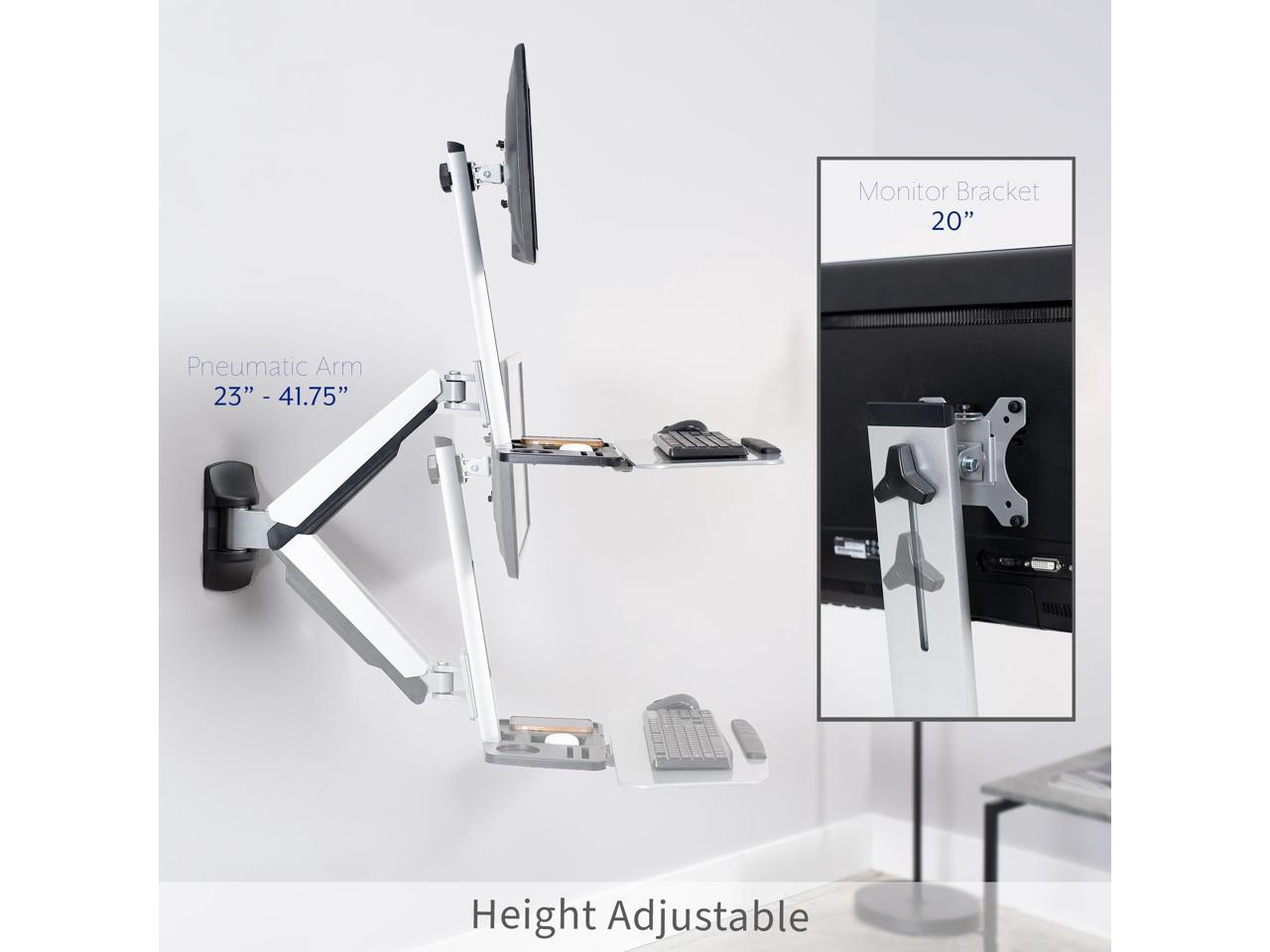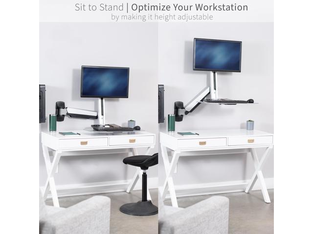 - Sit-to-Stand Workstation: This height adjustable workstation wall mount encourages healthy movement throughout the day. Counter balance gas spring arm adjusts to the weight of your monitor and keyboard for easy transitioning