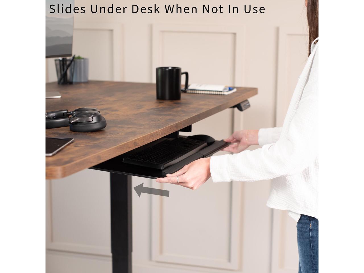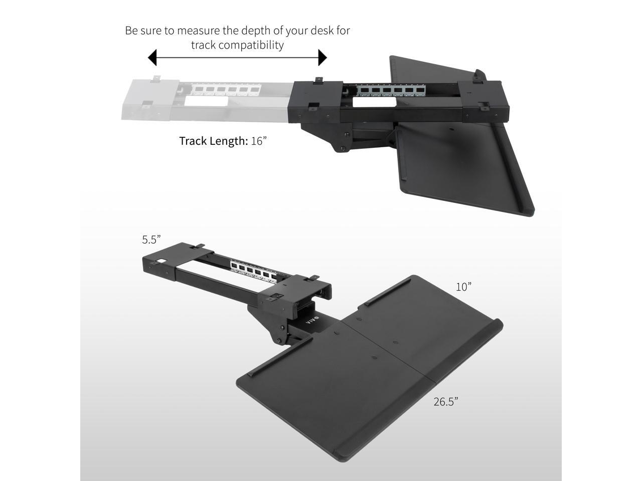 Ergonomic Keyboard and Mouse Tray: Mounts under your desk using the included hardware. Features a deluxe rolling track for smooth in and out movement (Total tray weight is 10 pounds. Be sure your desk can support this under-mounted weight)