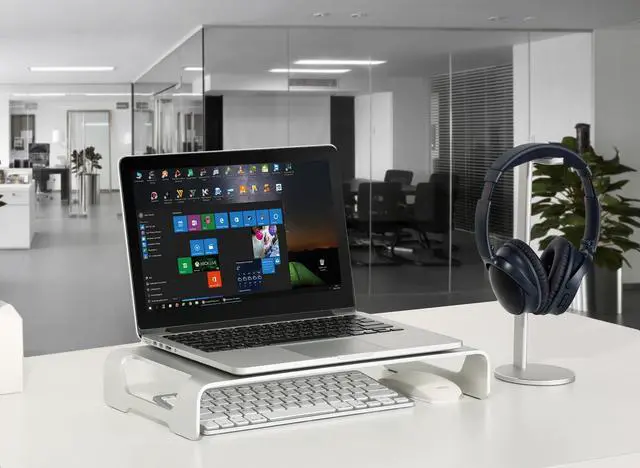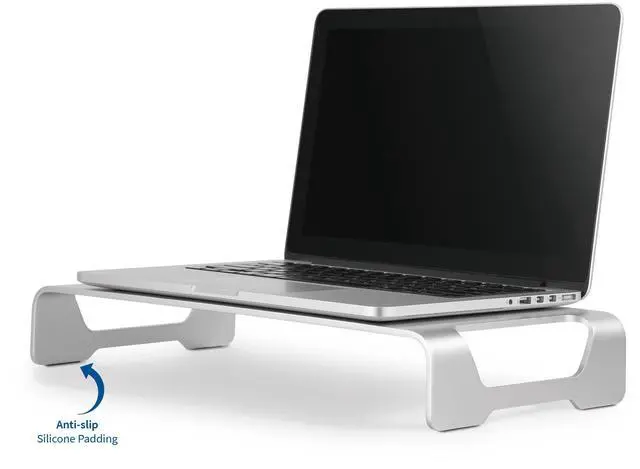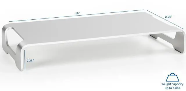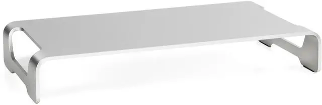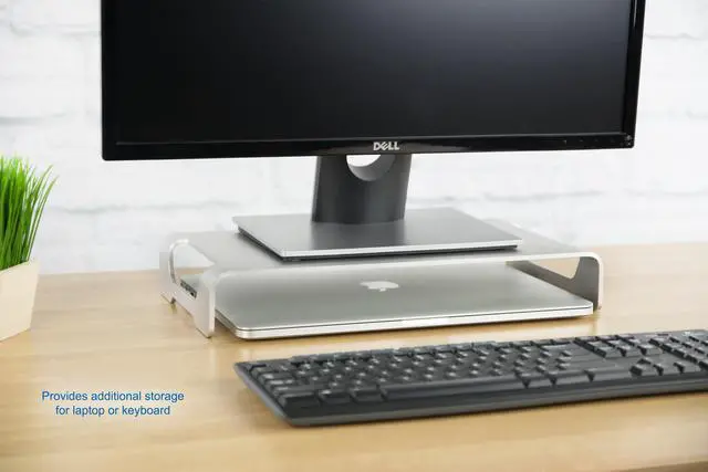 Raise your monitor up to a comfortable, ergonomically correct height while maximizing desk space with this modern monitor riser from VIVO. Keeping your computer's display at an ergonomic position helps reduce strain on your back, neck, and eyes. Suitable for monitors, laptops, and TVs in the home or office. Place your monitor on top while sliding the keyboard and mouse underneath to save desk space when not in use. The open slots on each side of the stand create easy transportation. Zero assembly is required out of the box!