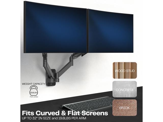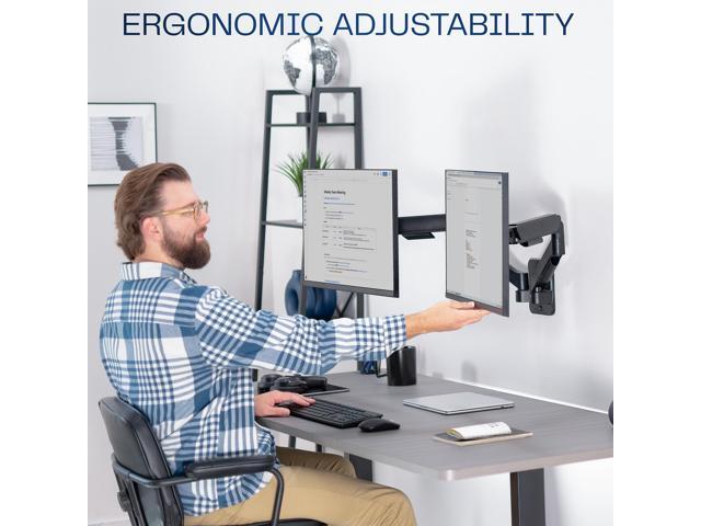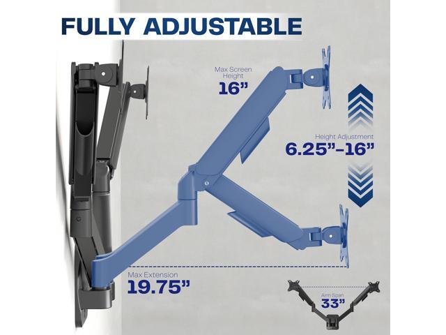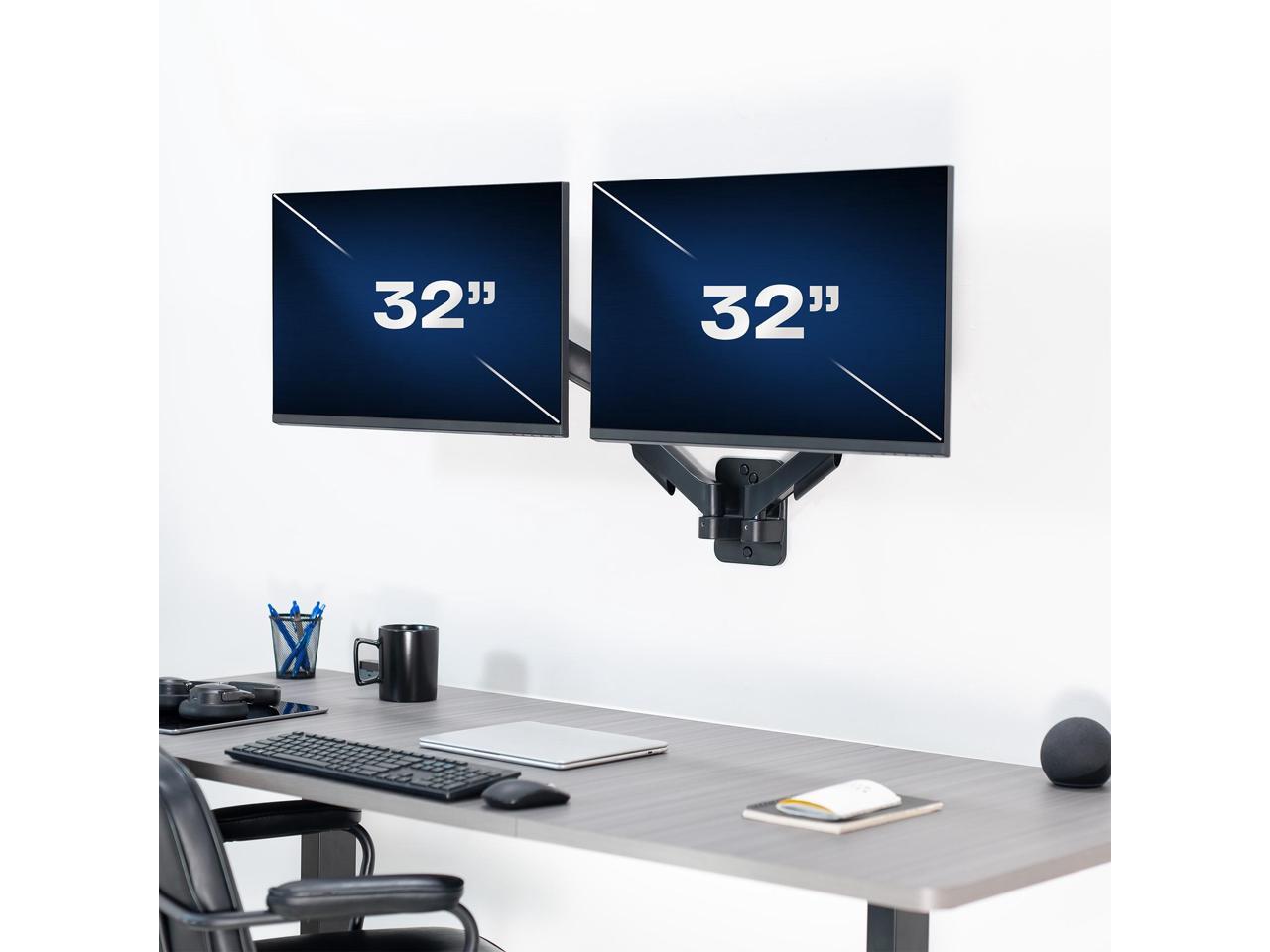 Counter-Balance Wall Mount: Clear up valuable desk space with a double extended pneumatic spring arm wall mount. Features toolless and instant height adjustment, allowing you to find the perfect ergonomic viewing angle