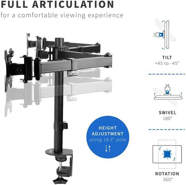 Clear up valuable workspace and view three monitors side-by-side with STAND-V003Y provided by VIVO! Manufactured with high-grade steel that provides security and resists scratches, this stand was built to perform! Designed with user-geared features such as arm articulation, removable VESA mounting plates, adjustable monitor height, integrated cable management, and more, this mount is customizable to your particular office needs. The versatility of screen placement allows for ergonomic viewing that aids in decreased fatigue and muscle strain on the neck, back, and shoulders. This product's heavy-duty construction provides excellent triple monitor support, and creates a viewing experience perfect for you!