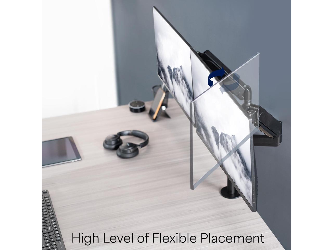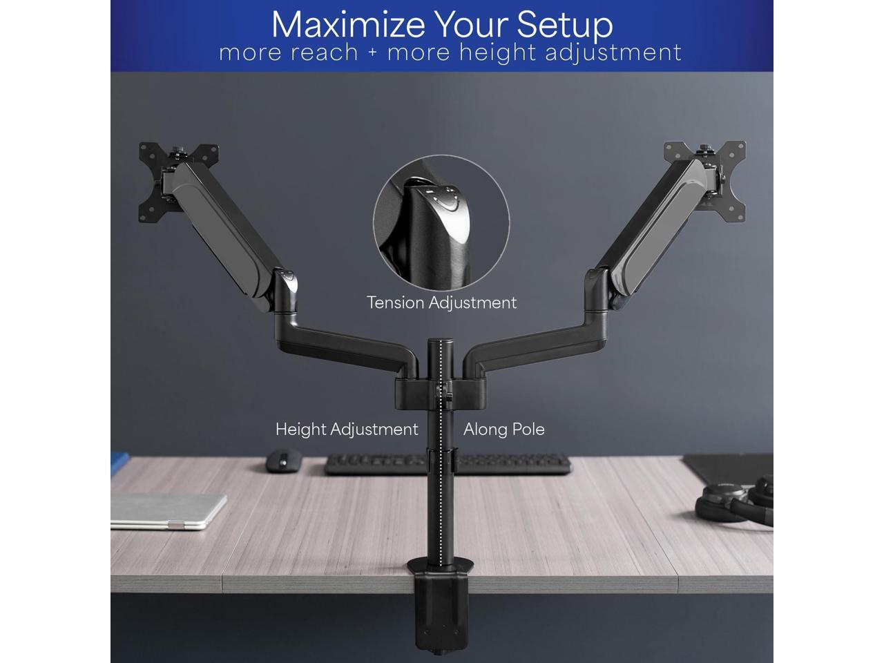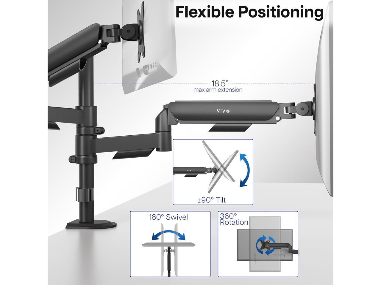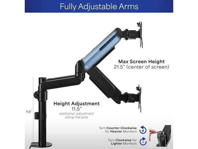 - Articulation and Height Adjustment: Flexible arms offer smooth tilt, swivel, and full rotation for comfortable viewing angles. Dual mechanical springs provide smooth height transitions by perfectly counterbalancing the weight of your monitors