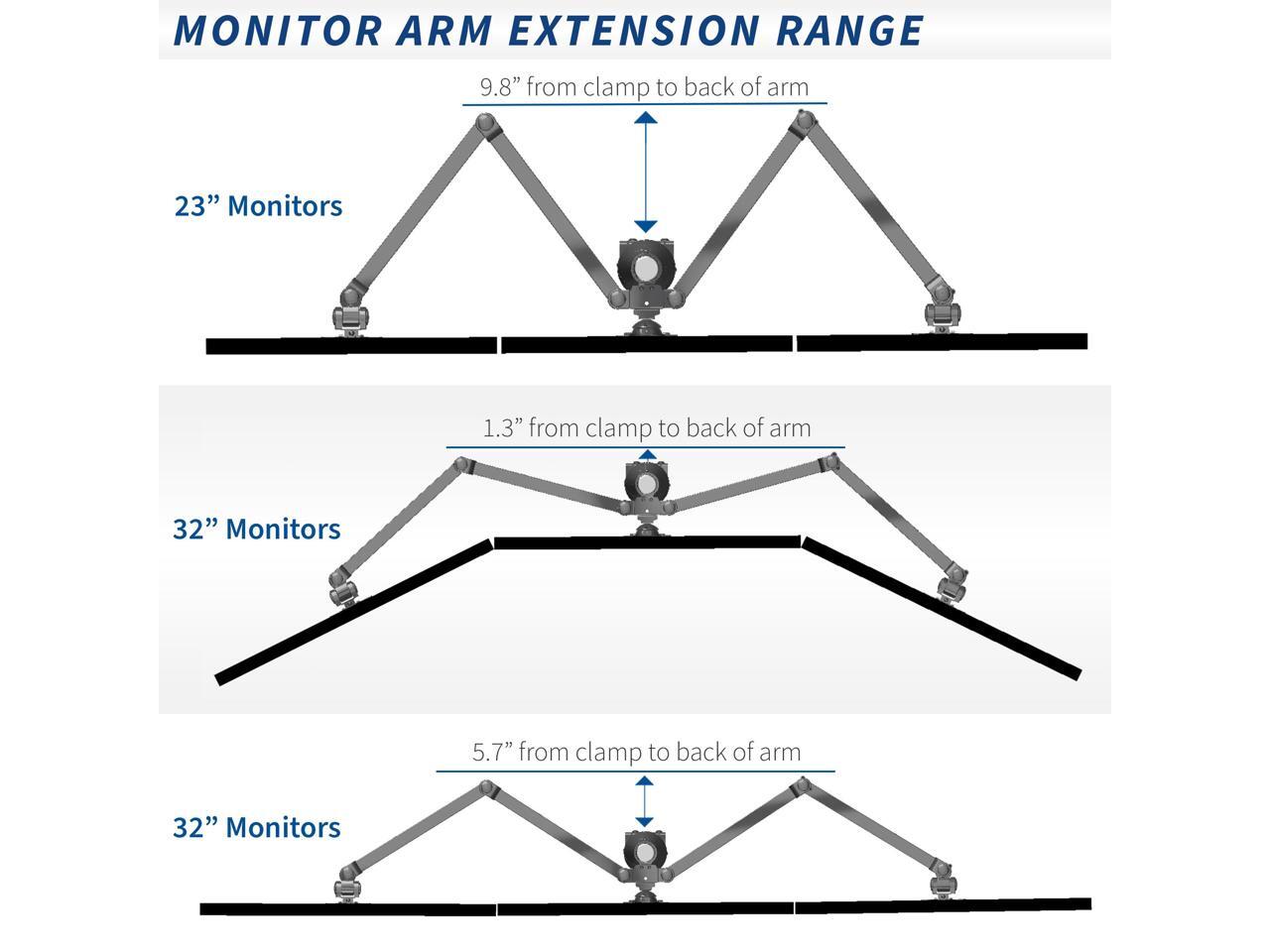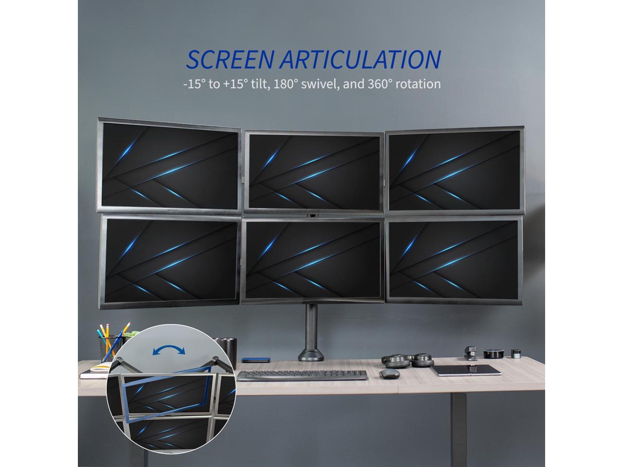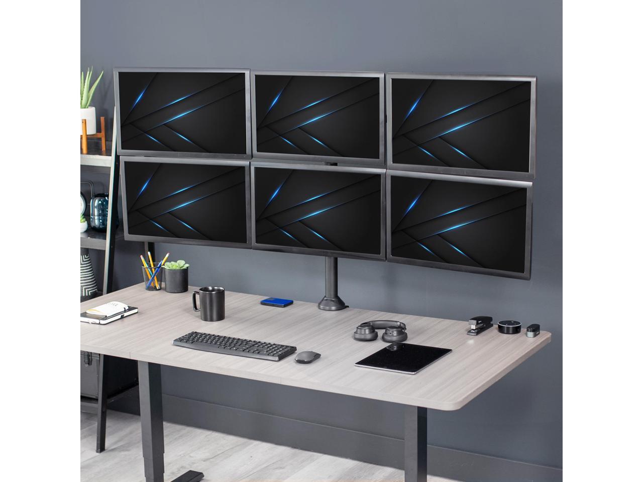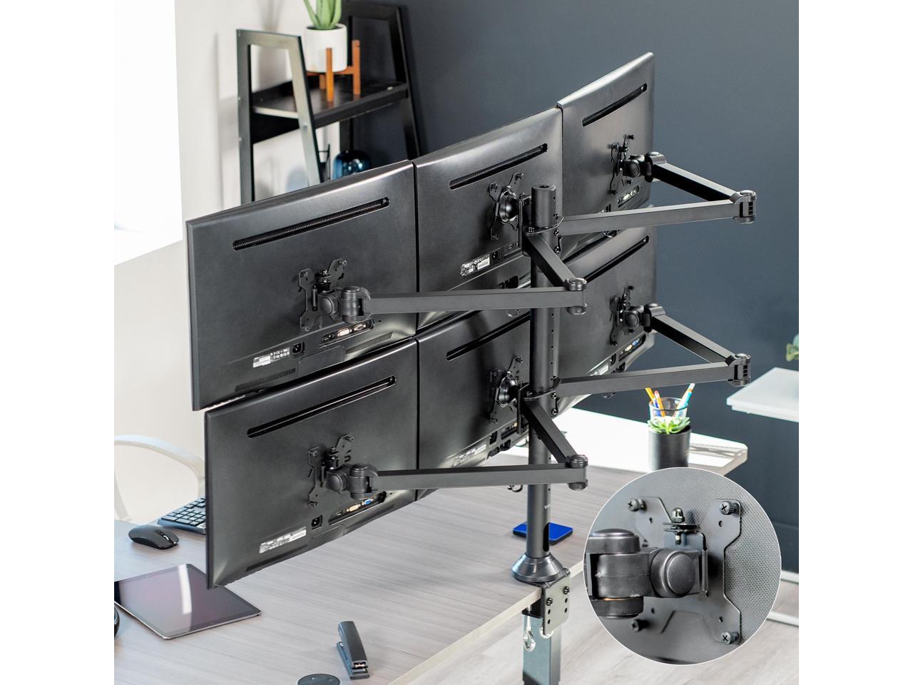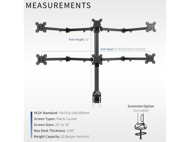 Fits 23" to 32" Screens: This sturdily constructed, solid steel mount provides exceptional support and durability to hold six computer monitors 23 to 32 and up to 22 lbs each with 75x75mm and 100x100mm VESA. Best when used on a sturdy desk or tabletop