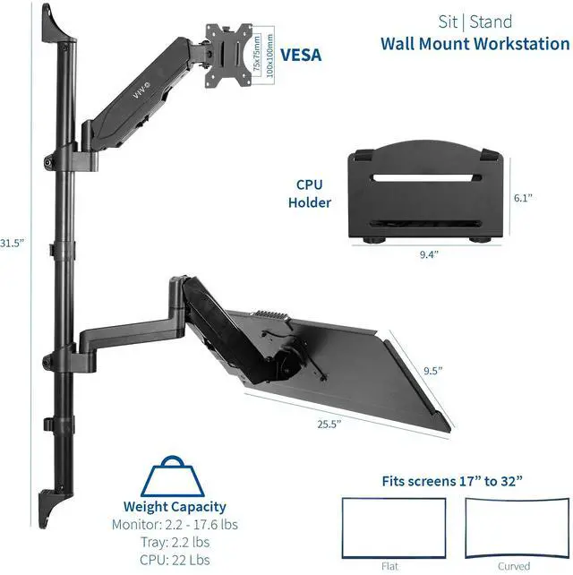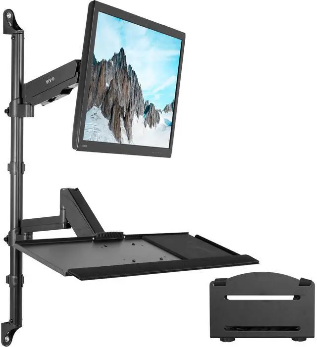 Find the ergonomic workstation boasting maximum space efficiency with Sit to Stand Single Monitor Wall Mount Workstation (STAND-SIT1BW) from VIVO! Alternating between sitting and standing throughout your workday will greatly benefit your posture and health, and this mount lets you do that without needing a full size standing desk. Designed with solid steel construction that firmly holds your expensive equipment at comfortable viewing angles, this product provides the flexibility needed to accommodate your optimal workflow. Full articulation creates comfortable viewing and typing angles, while integrated cable management neatly conceals power cords to produce a clean and organized appearance. All the necessary hardware and instructions are provided for assembly, so you can get your new workstation mounted in no time!