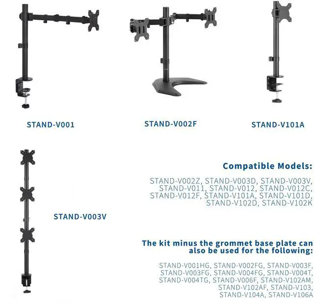 Give your monitor stand ultimate stability with this heavy-duty grommet mount (PT-SD-GT01D) from VIVO! Designed for desks up to 3.25 in thickness, you can give your monitor stand a sturdy foundation while saving desk space that a freestanding base would occupy. The grommet is secured by simple tightening for fast and easy installation. The solid steel construction guarantees it will last and hold your monitor(s) securely in place.