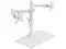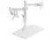 Enjoy the benefits of increased efficiency by using White Dual Monitor Desk Stand (STAND-V002FGW) from VIVO! Enhance your work day with this high-grade steel stand built for scratch resistance and security. Designed with user-geared features such as arm articulation, removable VESA mounting plates, adjustable monitor height, integrated cable management, and more, this mount is customizable to your particular office needs. The versatility of screen placement allows for ergonomic viewing aiding in decreased fatigue and muscle strain on the neck, back, and shoulders.The sturdy tempered glass base adds a classy look to your office while providing ample support for the monitors. The base's durable surface also allows extra room for material placement, thus freeing up valuable desk space!
