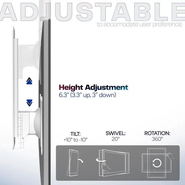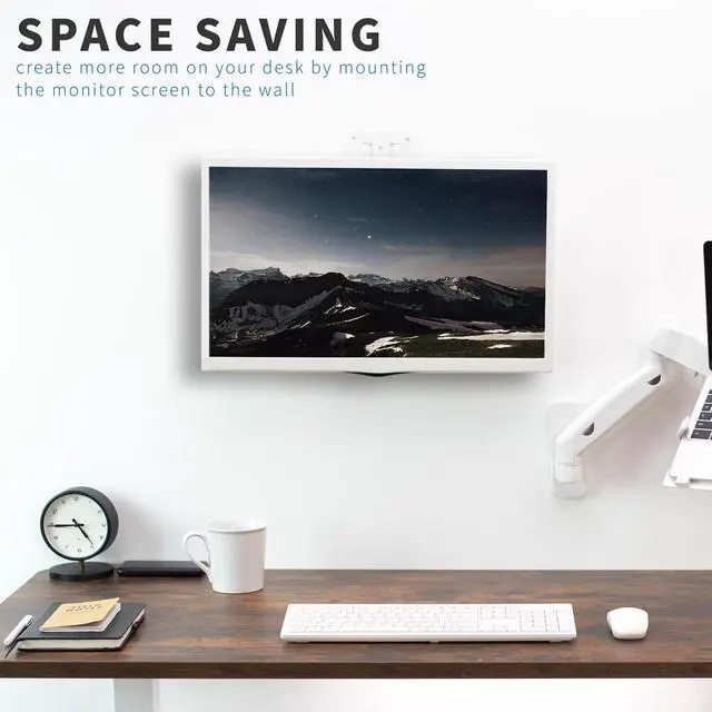 Save desk space and raise your screen to an ergonomic height with White Single Monitor Wall Mount (MOUNT-VW01AW) from VIVO! This durable mount gives your monitor 6.3 of tool-less height adjustment (3.3 up and 3 down from the center), so you can find just the right viewing position after the screen is mounted to the wall. To reset the height, simply raise the monitor to the highest point and then place at the desired setting. Additional features include screen articulation for comfortable viewing angles, a low profile design for space efficiency, and sturdy steel construction to keep your monitor safe and secure. All necessary hardware and step-by-step instructions are provided so you can enhance your workstation in no time!