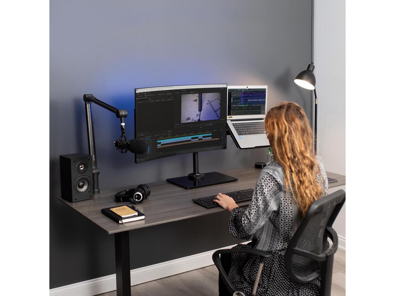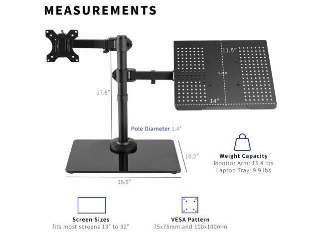 - Fits 13" to 32" Screens: Single monitor and laptop freestanding mount fits most screens up to 32 and 15.4 lbs with 75x75 or 100x100mm VESA. The vented tray holds laptops up to 17 and 9.9 lbs for a laptop-monitor dual screen display --Patent Pending--
