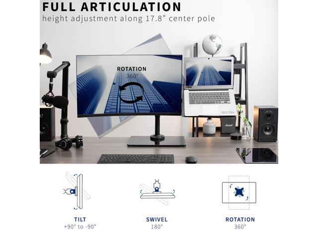 - Full Articulation: Adjustable arms offer +90° to -90° tilt, 180° swivel, 360° rotation, and height adjustment along the center pole. Your monitor can be placed in portrait or landscape orientation