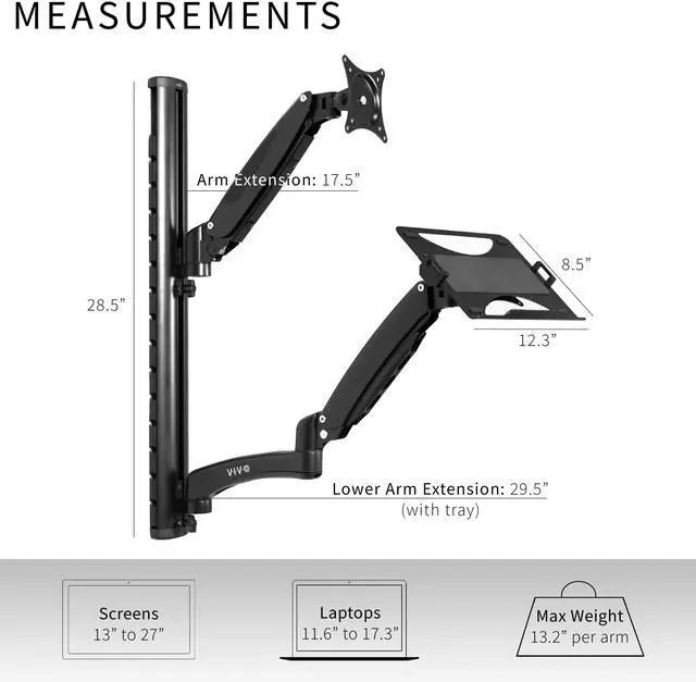 Save valuable space with the Sit to Stand Single Monitor & Laptop Wall Mount Workstation (STAND-SIT1L) from VIVO! Designed to make your work experience more convenient and ergonomic, this wall mounting station allows you to find your sweet spot every time with durable counterbalance spring adjustability. Experience quick and easy access to a workstation in fast-paced environments, and save space with arms that fold against the wall for out-of-way storage. With easy height transitions and adjustable viewing angles, you can maintain comfort and variety in your posture!