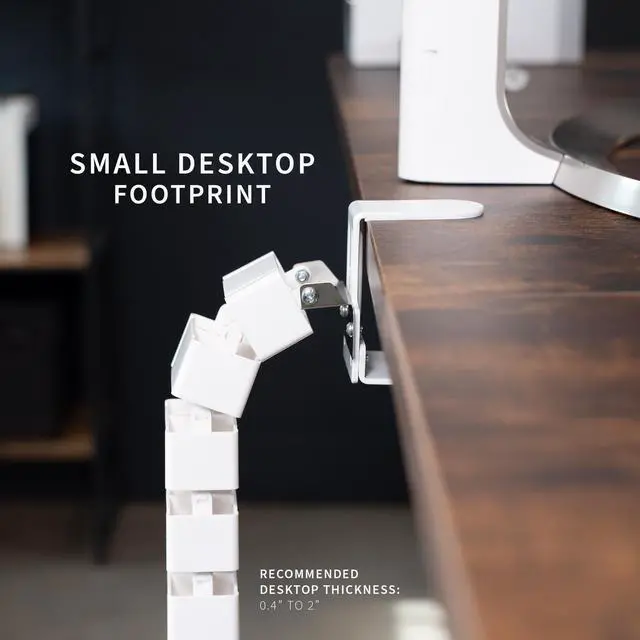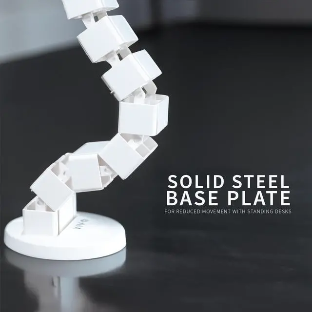 Cable management is made easy with the White Clamp-on Vertebrae Cable Management Kit for Desks (DESK-AC01P-W) from VIVO! This flexible, clamp-on strip provides modern and attractive desk-to-floor cable management for your work area, perfect for height adjustable and standard desks alike. The square interlocking clips are built with ergonomics and versatility in mind, featuring a quad entry cabling system for efficient cord organization. Keep unsightly and hazardous A/V and power cords clean and protected with this convenient addition to your work environment.