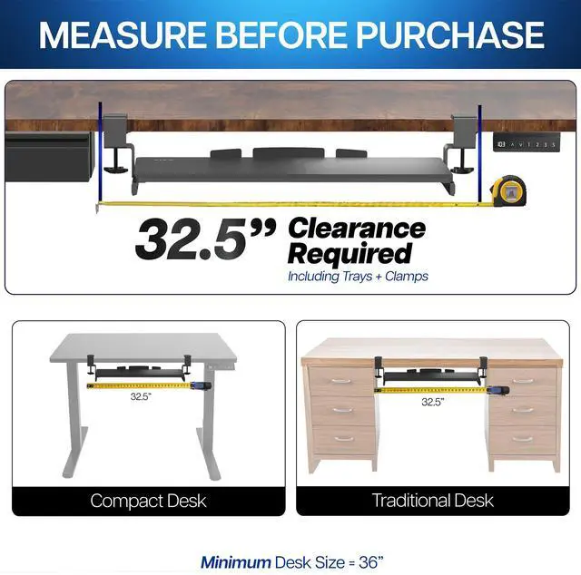 Enjoy the benefits of ergonomic typing angles and a work area thats spacious and extra sturdy with the Bamboo Clamp-on Keyboard Tray (MOUNT-KB05O) from VIVO! Win back valuable desk space by adding a lower-tier surface for the keyboard, mouse, and other small items. Featuring smooth gliding motion for easy placement, sturdy C-clamps for convenient mounting, and anti-skid padding for scratch resistance, this mount was built to perform! Under-desk tray placement creates an ergonomic setup that decreases fatigue and muscle strain on the neck, back, and shoulders. The sleek appearance adds a modern look to any office while providing ample support for your keyboard and accessories. All hardware is provided for easy installation, so you can get your tray mounted and organized in no time!