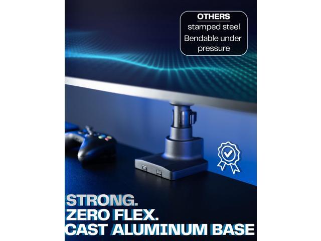 Heavy-Duty Cast Aluminum Construction: Clamp base (fits desktops up to 2 thick) and arms are made of premium cast aluminum for maximum strength, scratch resistance, and durability. High-capacity tilt joints accommodate heavier screens without sagging