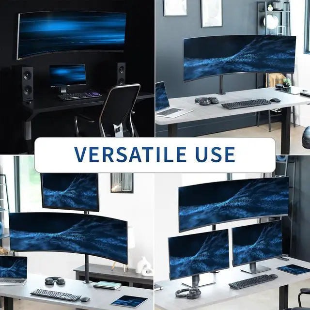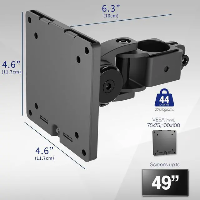 Mounting your large monitor just got easier with the Pole Mount Ultrawide Monitor Bracket (MOUNT-POLE49U) from VIVO! Whether you want to update your current monitor stands VESA compatibility or add ultra wide mounting capability to an existing pole (1.4 in diameter), this sturdy bracket has you covered! It holds one ultrawide screen up to 49 in size and 44 lbs in weight with VESA 75x75mm or 100x100mm mounting hole patterns. The bracket is adjustable with +85° to -25° tilt, 160° swivel, and 360° rotation for comfortable viewing angles and reduced screen glare.