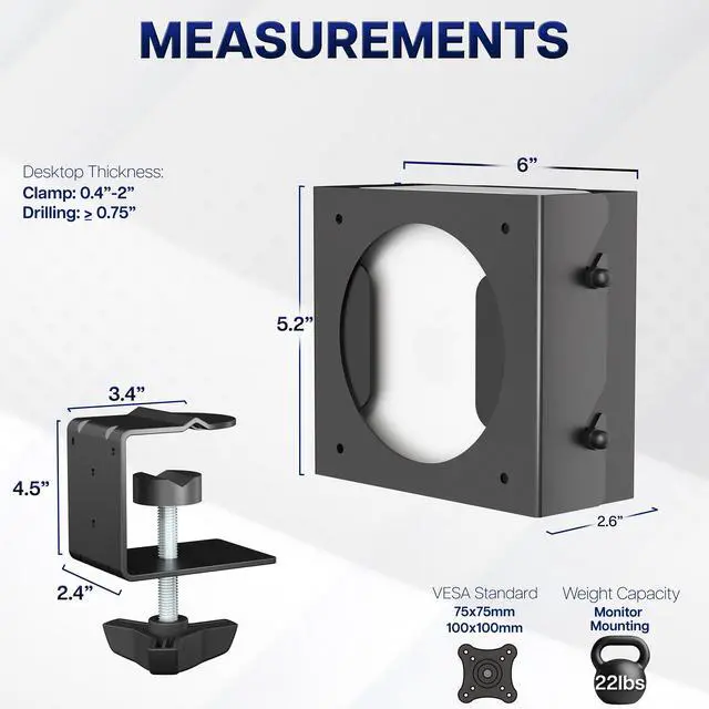 Weight Capacity (Desk Clamp & Under Desk Options): 4.4 lbs
