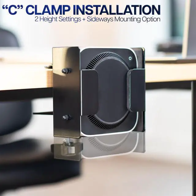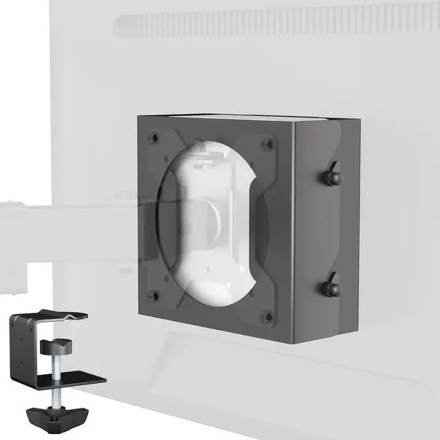 Securely mount and conceal your Mac Mini with the VESA Mount Designed for the Mac Mini 2024 (MOUNT-MINI24) from VIVO! This VESA-compatible mount makes mounting and protecting your mini PC a breeze. The open, ventilated frame increases airflow to your PC and helps prevent overheating. Setup options include mounting between a monitor and VESA arm, securing to the back of your monitor with an OEM stand, clamping to your desktop, or installing to the underside of your desk to help declutter your workstation. All placement options provide easy access to your Mac in a safe, out-of-the-way location. Hardware and instructions are provided for installation, so you can create your preferred layout in no time!
