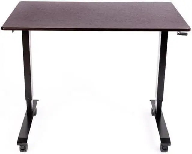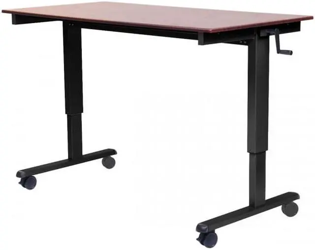 The Luxor Crank Adjustable Standing Desk gives employees the ability to find that productive balance of sitting and standing throughout the long workday. Its turn-handle crank easily adjusts the height of the desk with minimal effort, and the 47.5" wood tone laminate surface offers ample workspace. The rugged frame is constructed of steel with a powder coat finish, and dual-wheel casters (two with locking brakes) allow you to maneuver this desk to suit ever-changing workspace needs.