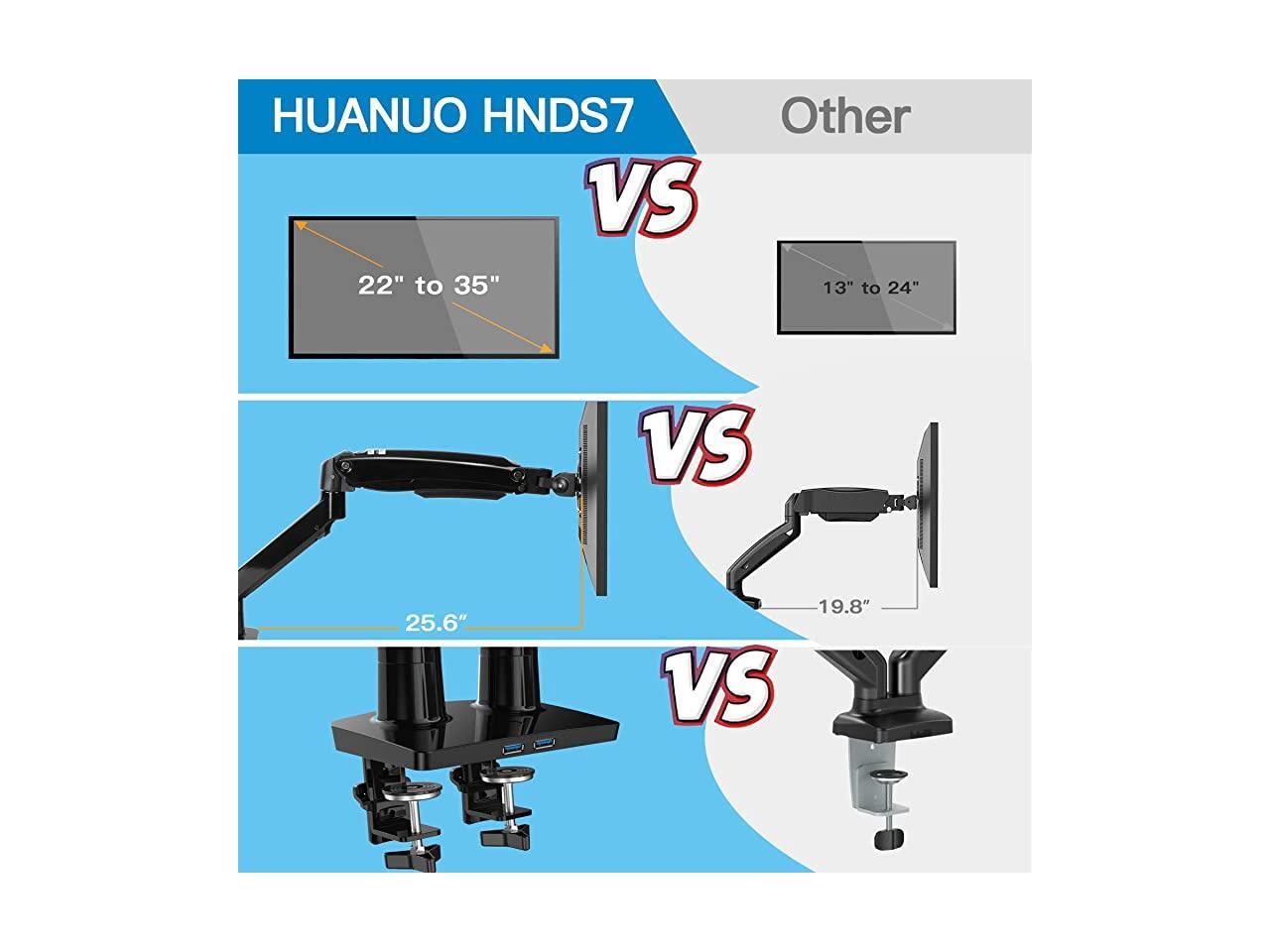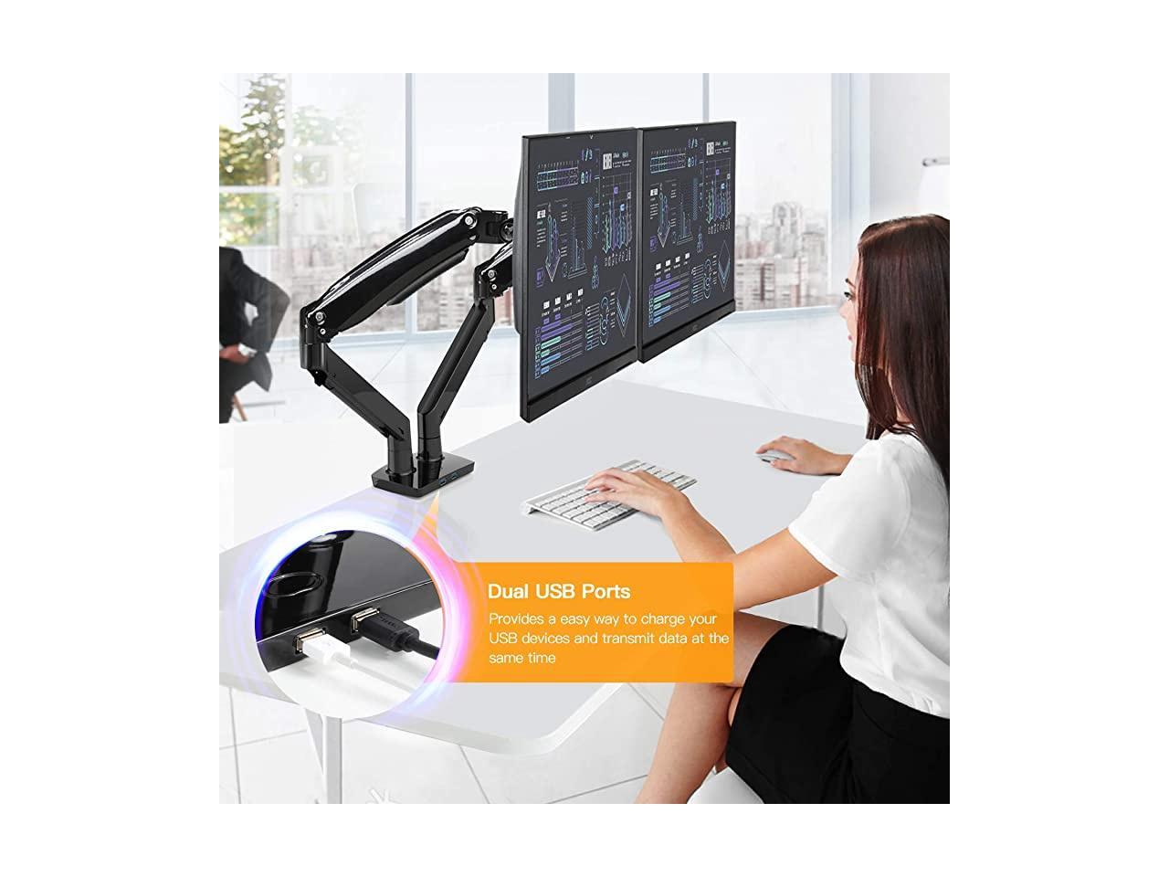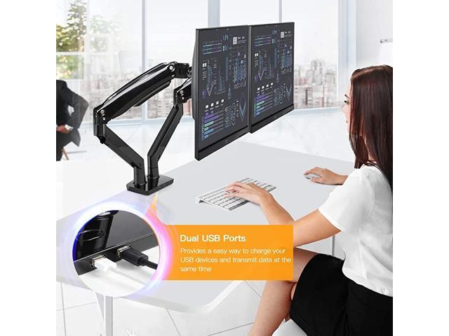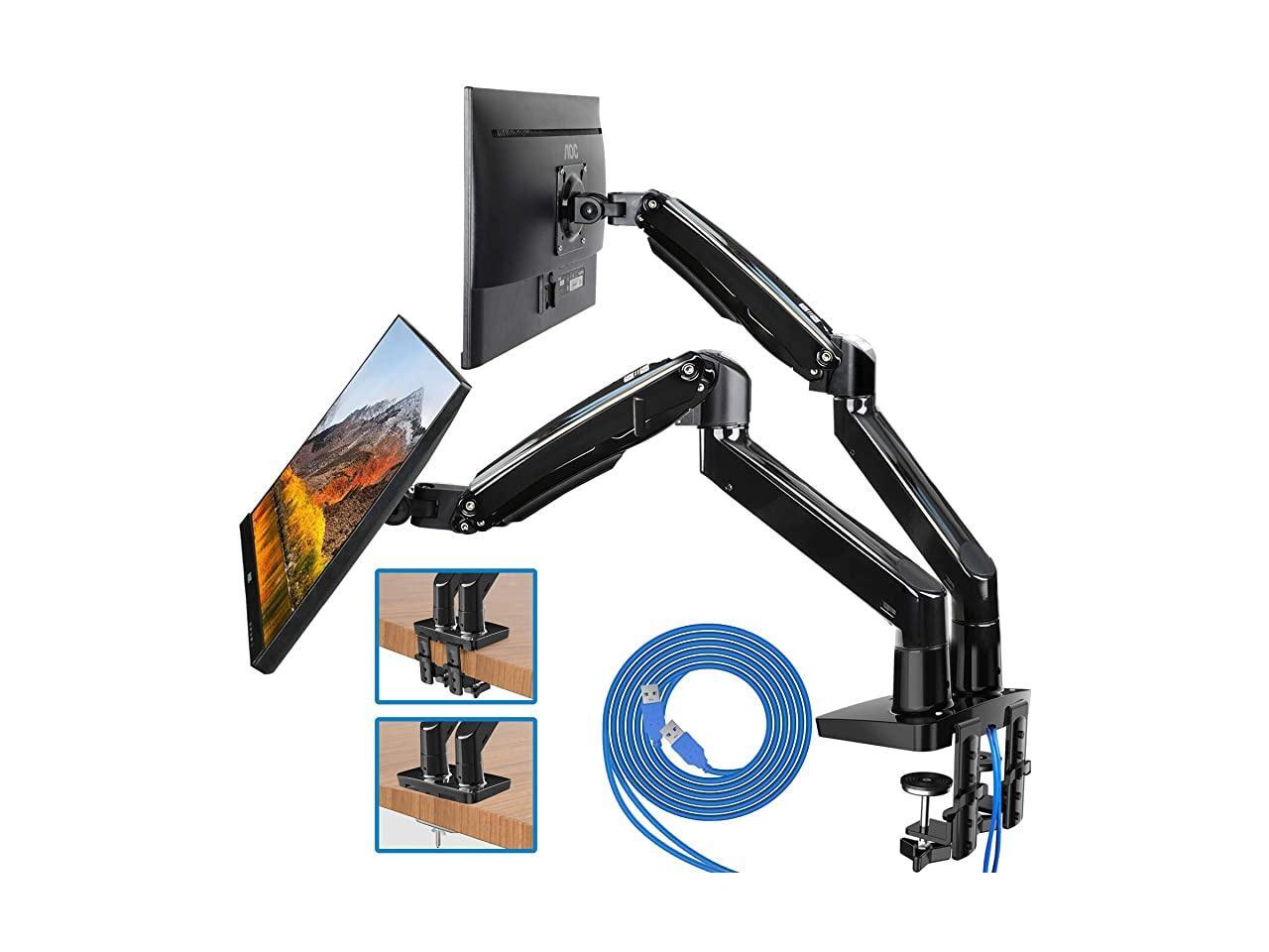 - *****INCREASED STABILITY FOR HEAVIER MONITORS - The upgraded base, built-in premium gas spring and large arms make this dual monitor mount more stably and securely hold two 22-32 screens weighing up to 19.8lbs. Compatible with VESA 75x75mm and 100x100mm