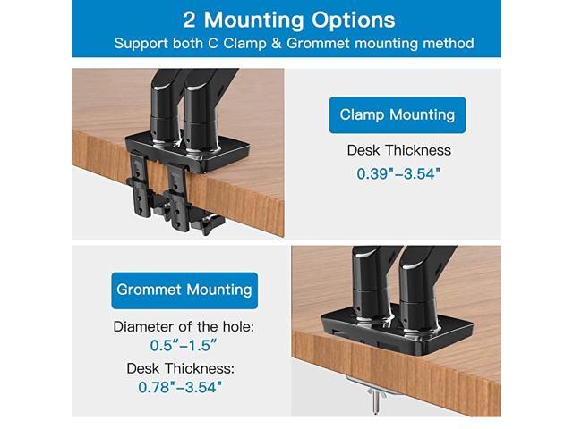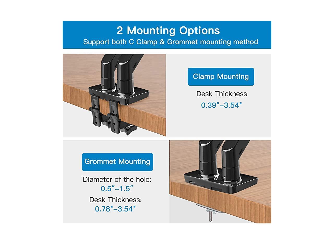 - *****INCREASED STABILITY & CONVENIENCE - The enlarged base and sturdy construction ensure the super stability. Support both clamp and bolt-through grommet mounting for desk thickness up to 3.54". The hole for grommet mounting sh