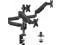 Articulating Triple Monitor Mount: The fully adjustable monitor arms can tilt ±35°, swivel ±90°, and support rotation 360 degrees. Center screen can be height adjusted. The 2 gas spring arms make the extension, retraction, and height adjustment dynamically and easily. Multiple screen combinations, easily find an optimal viewing angle and position for comfortable work.