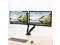 Style: Gas SpringSTAND-V002O is a dual monitor gas spring mount that holds two side by side screens from. The counterbalance gas spring arm allows for simple height adjustment without the use of tools and is fully adjustable allowing you to set your monitors to almost any viewing angle. The mount features a heavy duty bolt style 4" c-clamp. Also featured is an integrated cable management system. STAND-V002O is compatible with VESA 75mm x 75mm and 100mm x 100mm and fits two screens up to 27" in size and 14.3 lbs in weight each. Monitors can be smoothly rotated between landscape or portrait position. The open top slots on the VESA face plates make mounting your monitors a breeze. Compatibility Supports two screens up to 27 in size Fits VESA 75x75mm or 100x100mm mounting holes Holds up to 14.3 lbs in weight Features Deluxe gas spring technology provides height adjustability which requires no tools and little effort Mounting arms offer 90 tilt, 90 swivel, and 360 rotation for optimal viewing angles Screens can be easily placed in portrait or landscape orientation Attaches to the back of your desk (up to 4 thick) using a heavy-duty C-clamp or optional grommet mount