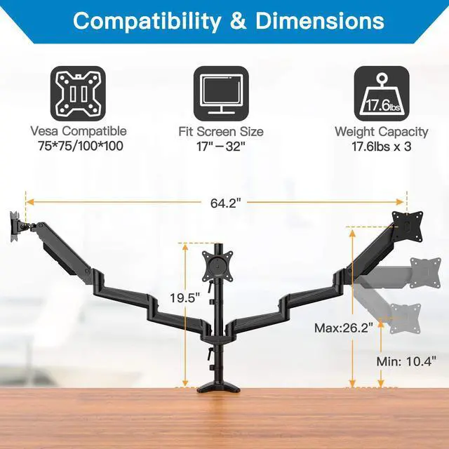 Increase Comfort & Efficiency - Complete your work in 3 monitors at the same times with comfortable view position. Now you can enhance your work efficiency in comfortable work posture.
