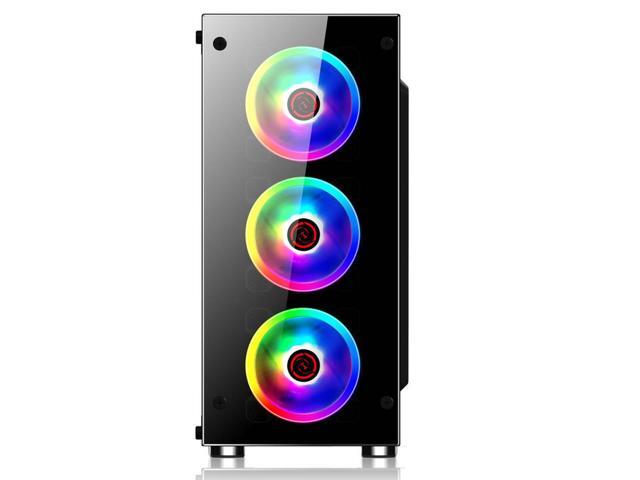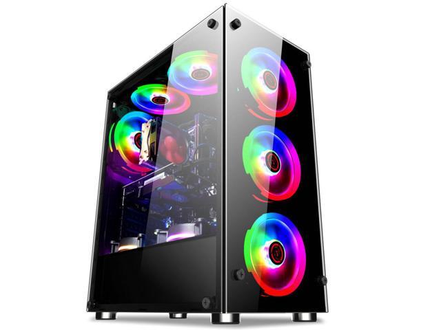 Hyun Shadow Desktop Computer Case Double-sided Glass Transparent Side Panel ATX PC Computer Case for Home Office