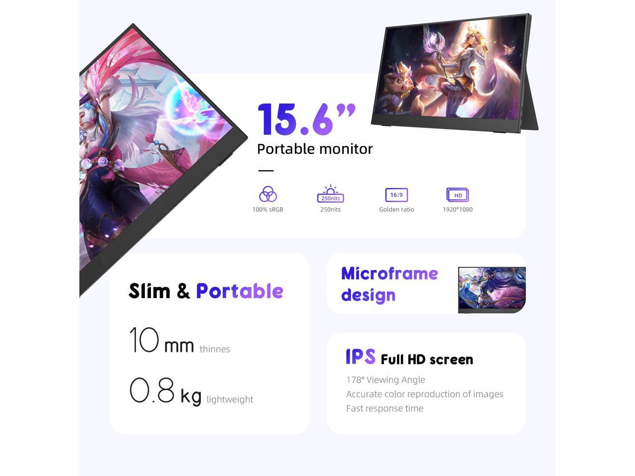 Enhanced portability: The JUSTTHINK Portable Monitor 15.6 Inch FHD 1080P Screen is designed for on-the-go use, making it ideal for business trips, travel, or remote work.