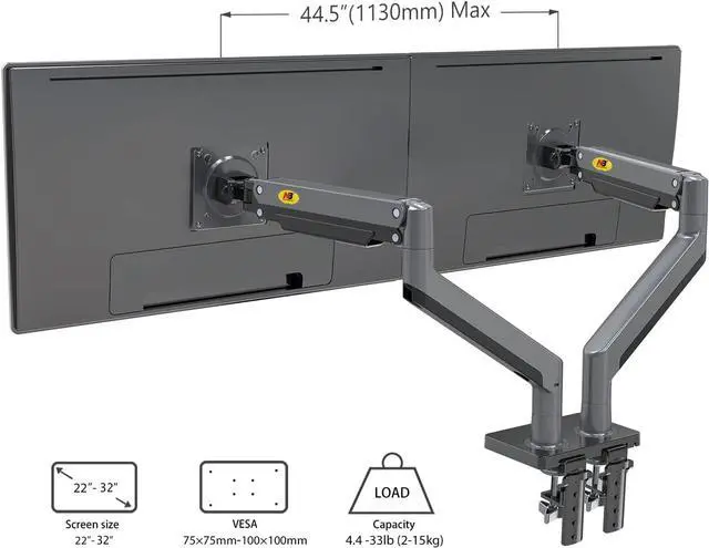 Dual Monitor Arm Ultra Wide Full Motion Swivel Monitor Mount with Gas Spring for 22''-32'' Monitors with Load Capacity from 4.4 to 33lbs for Each Arm Height Adjustable Monitor Stand