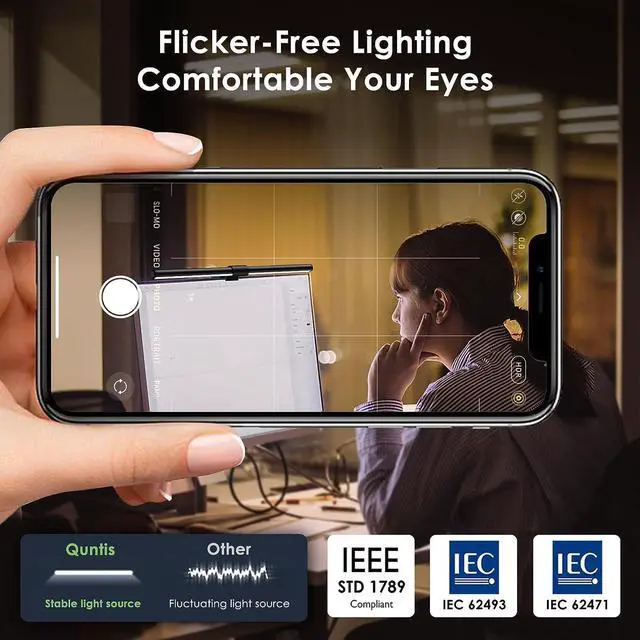 No Blue Light Hazard & Flicker-Free LightingCertified to meet the IEC/TR 62778 and IEC/EN 62471 standards, Quntis monitor light bar effectively eliminates harmful blue light that may affect vision, reducing eye irritation and providing optimal eye protection. Enjoy our flicker-free illumination that provides a stable light source without worrying about eye discomfort. Experience a truly comfortable and eye-friendly illumination with Quntis computer monitor light.