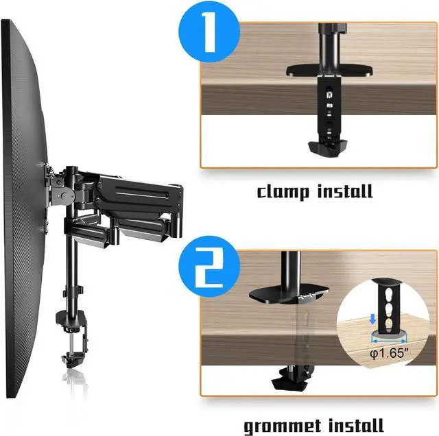 Two install options - C-clamp and optional grommet base save your valuable desk space(fits desk up to 3.85" thickness).