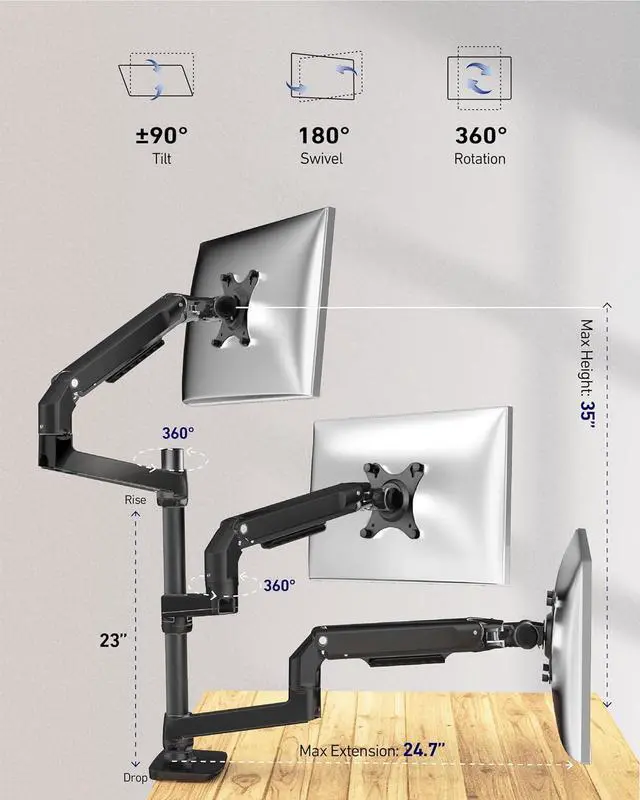 As an ergonomic desk monitor mount, it's not only easy to install but also promotes our health and doubles our office efficiency by achieving the comfiest working position.