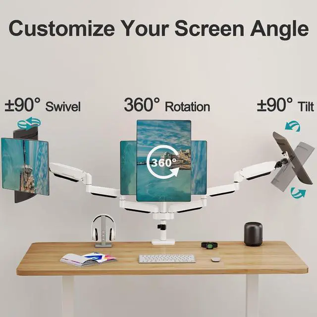 Strong and Durable - Our 3 screen monitor mount is mainly made of high-quality aluminum, more sturdy and durable. Especially compared to the iron mount, strong corrosion resistance, not prone to rusting. It can hold up to 3 monitors stably, ensuring the safety of your monitor setup. With this triple monitor desk mount, you can take your work efficiency to the next level, perfect for home office and gaming.