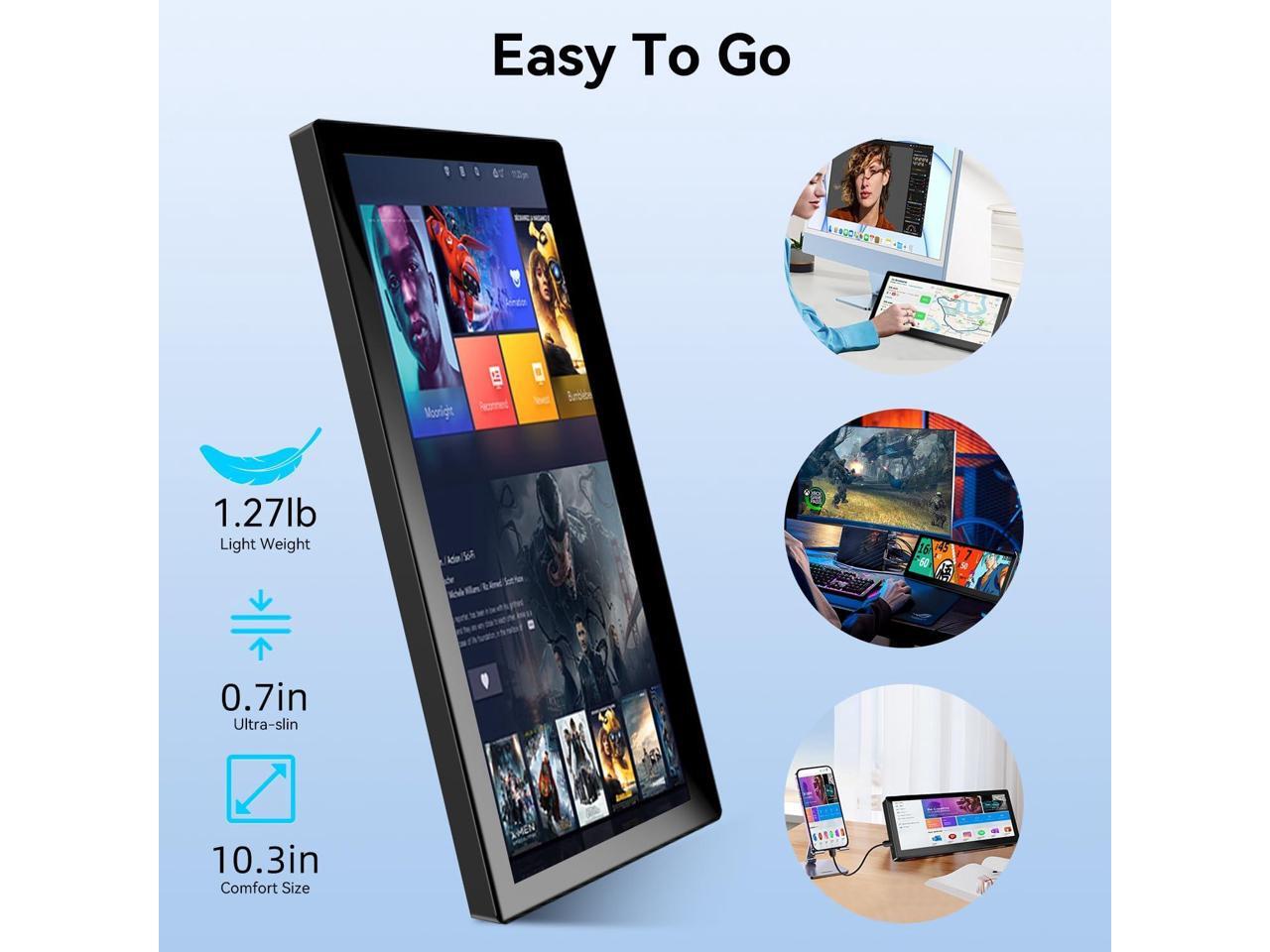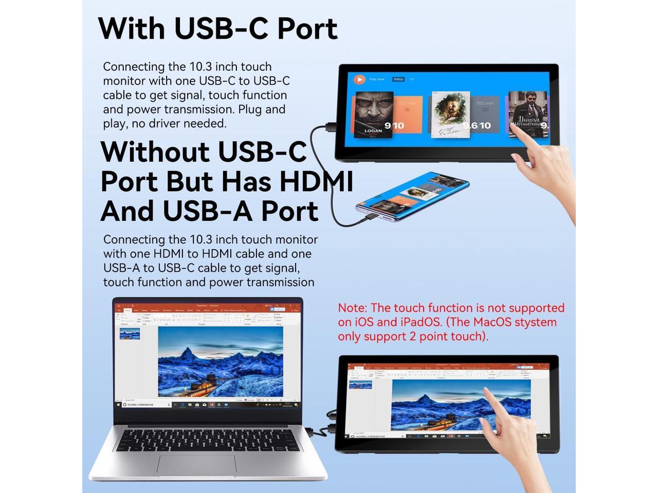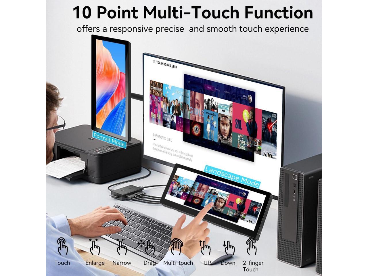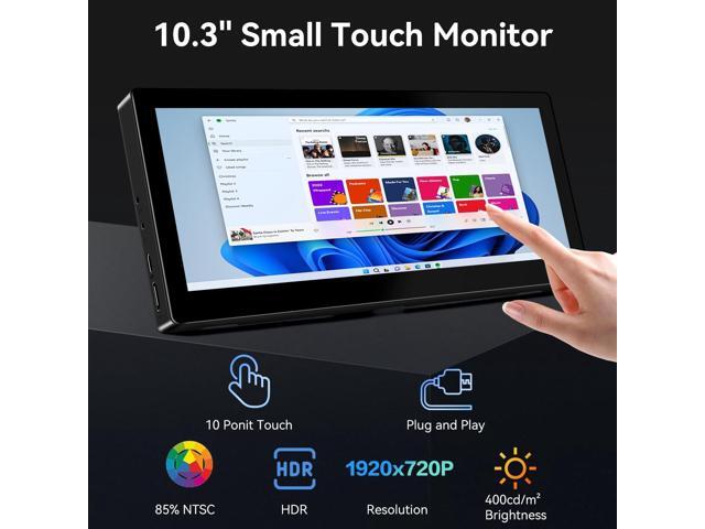 - Small Monitor Touchscreen with FHD IPS Display: Experience vibrant visuals on this 10.3 inch portable monitor touchscreen featuring an FHD IPS touch screen and responsive 10-point touch for seamless interaction. Its 1920x720 resolution offers crisp, vibrant visuals, a 178°wide viewing angle, 60Hz refresh rate perfect for multitasking and increasing your efficiency