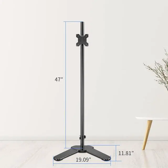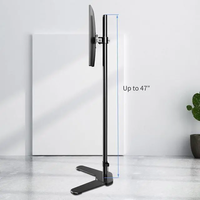 Single Tall Monitor Mount, Extra Long Computer Stand with 47 inch Pole, Floor Computer Stand, Free-Standing Monitor Desk Mount Support 13 to 27 inch Screen,22lbs