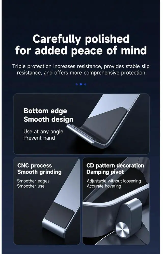 - STEADINESS: With the metel material, this tablet stand is more stylish and long-lasting. 8 slide-proof silicone pads on the top and bottom keep the stand and laptop from sliding.