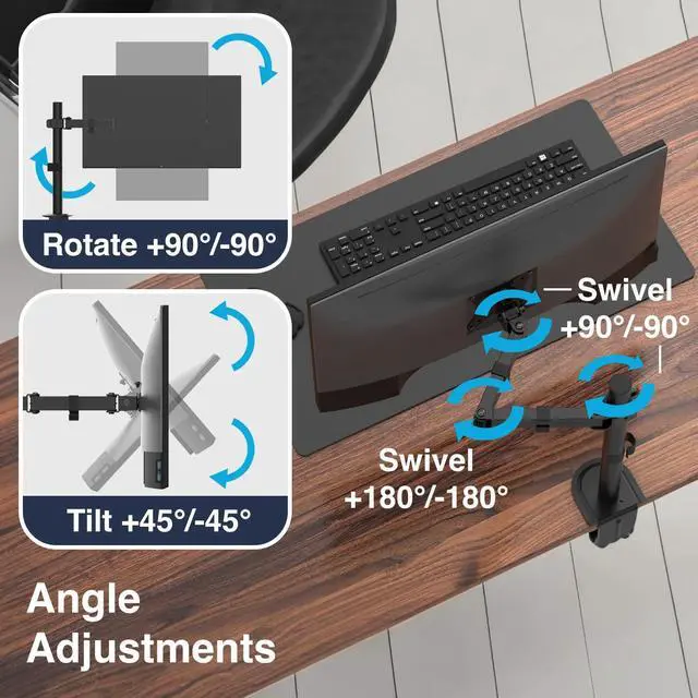Keeping your monitor at the correct height is crucial if you want to protect your back and neck from strain. But if you move around during the day, you may well need to adjust your monitor position. This single articulated steel monitor arm allows a range of movements, which can be easily achieved as you switch positions. Fitted with VESA mounts, the screens can be rotated a full 360 degrees if needed. And the height can be adjusted easily too. The positions can be locked in using the double joint if required.