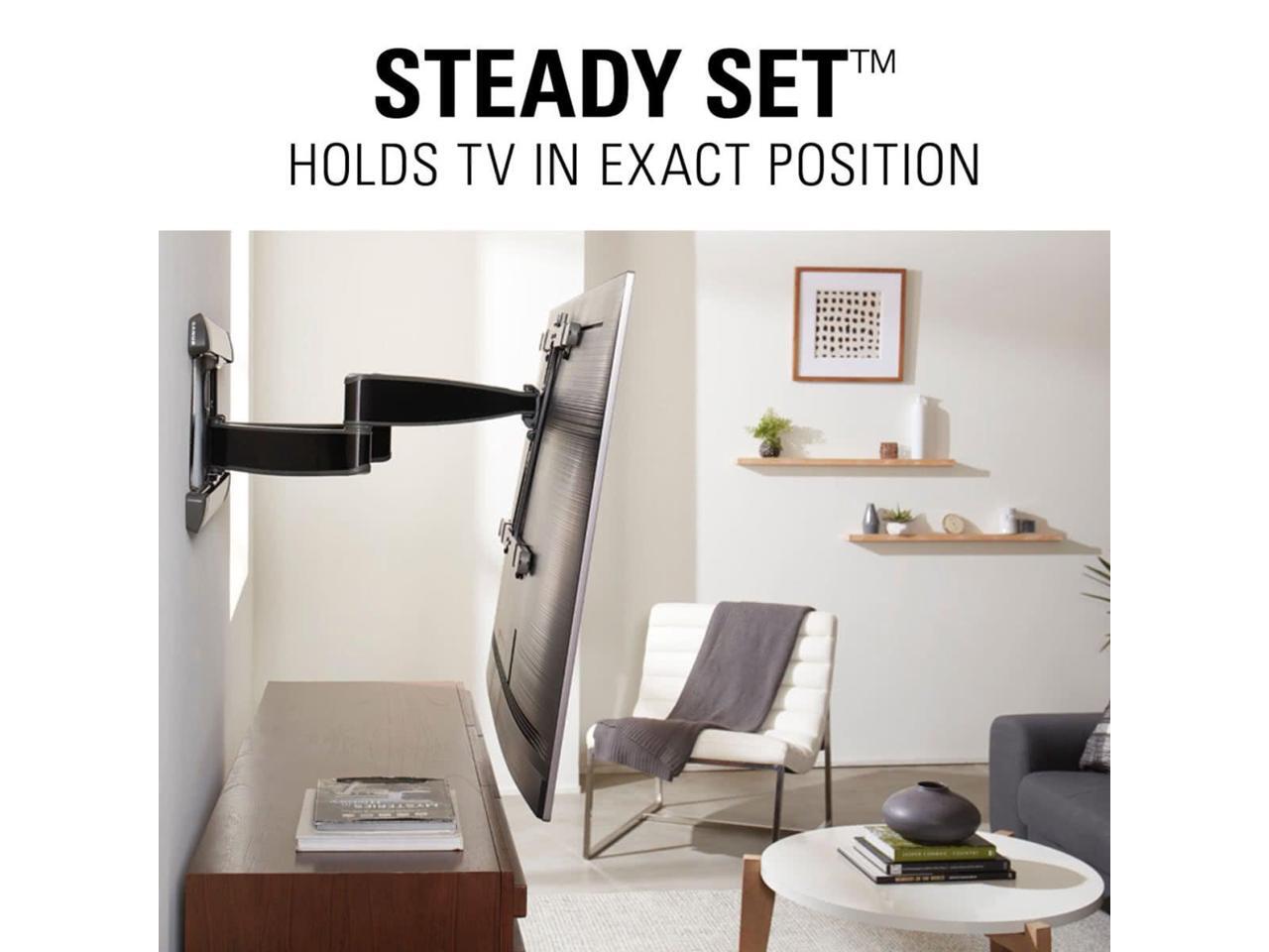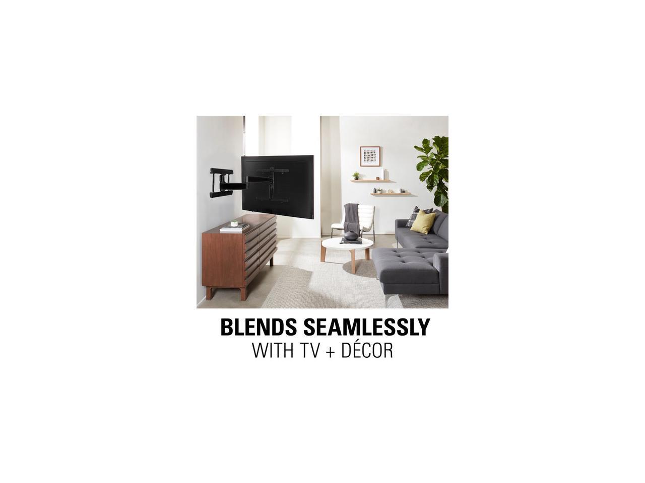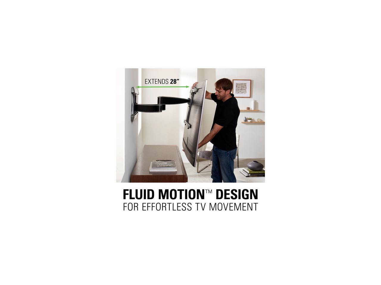 The VLF728 full-motion wall-mount bracket supports 42" to 90" flat-panel TVs that weight up to 125 lbs.