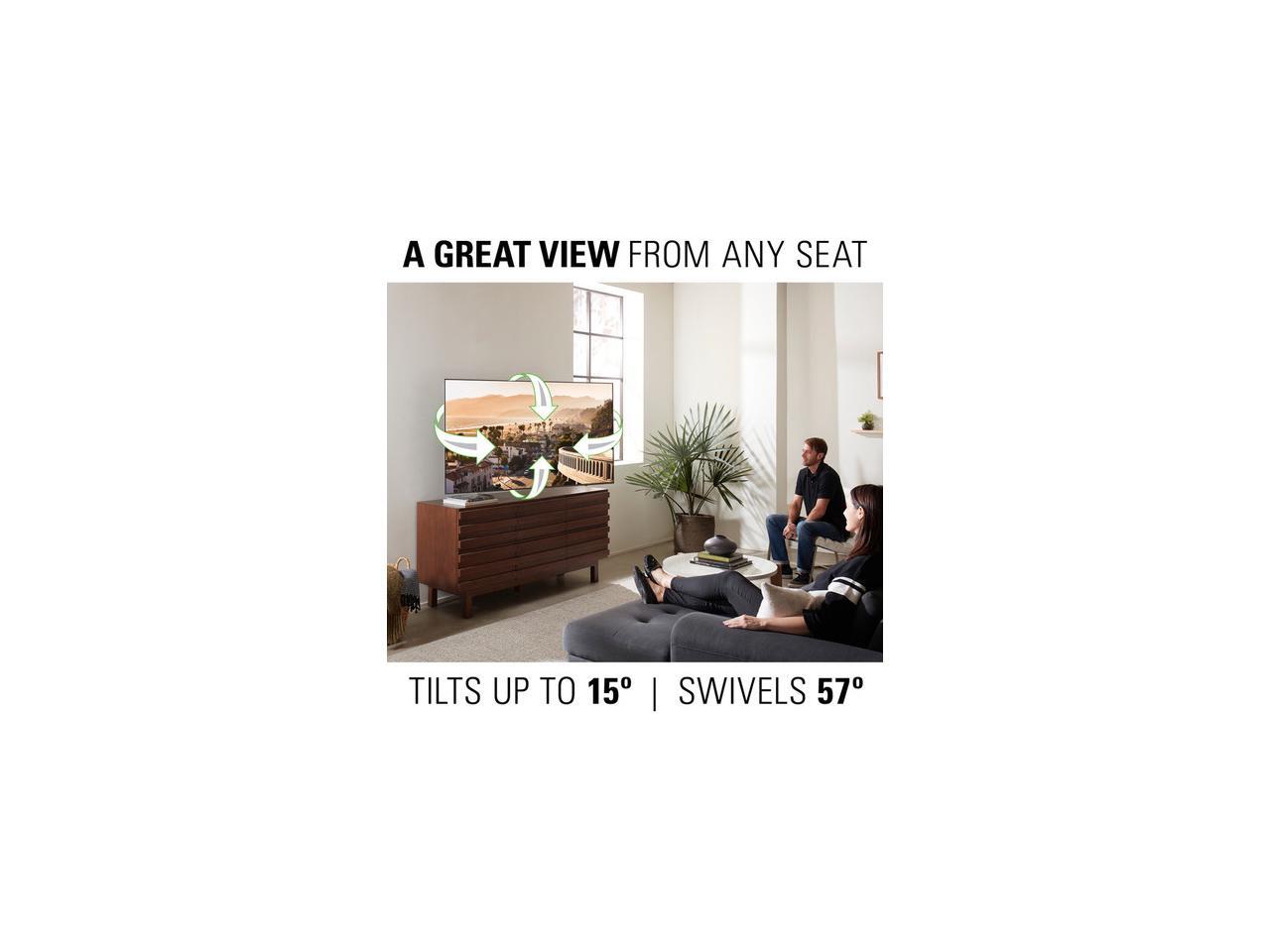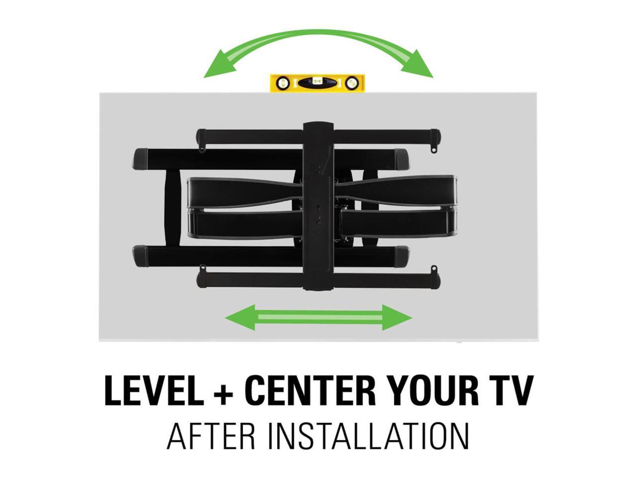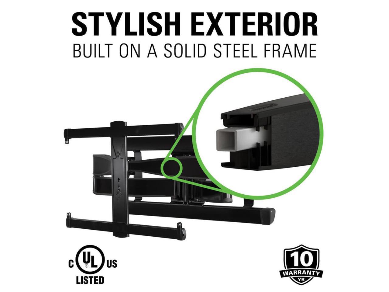 The VLF728 full-motion wall-mount bracket supports 42" to 90" flat-panel TVs that weight up to 125 lbs.