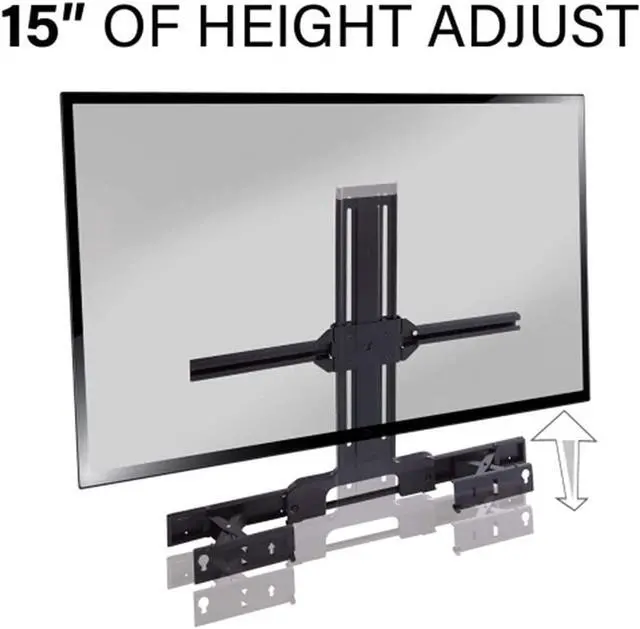 Features: Designed in partnership with Sonos this soundbar mount was designed to custom-fit the Sonos Arc Sound Bar Features 5" of depth adjustment to ensure mics and Atmos drivers are clear and working properly Up to 15" of height adjust ensures a snug fit under your mounted TV for a clean sleek look Features universal compatibility with SANUS TV mounts and other TV mount brands VESA Patterns and for more TV's 50"-90" Use the easy release latch to easily adjust the height for optimal placement under your mounted TV Easy 3-step installation no drilling required and everything you need to assemble the soundbar mount is included in the box What's in the Box Soundbar TV Mount TV Screws 4x M6/M8 Washers 2x Hex Key 2x M5 14mm 25mm Screws