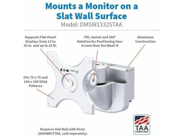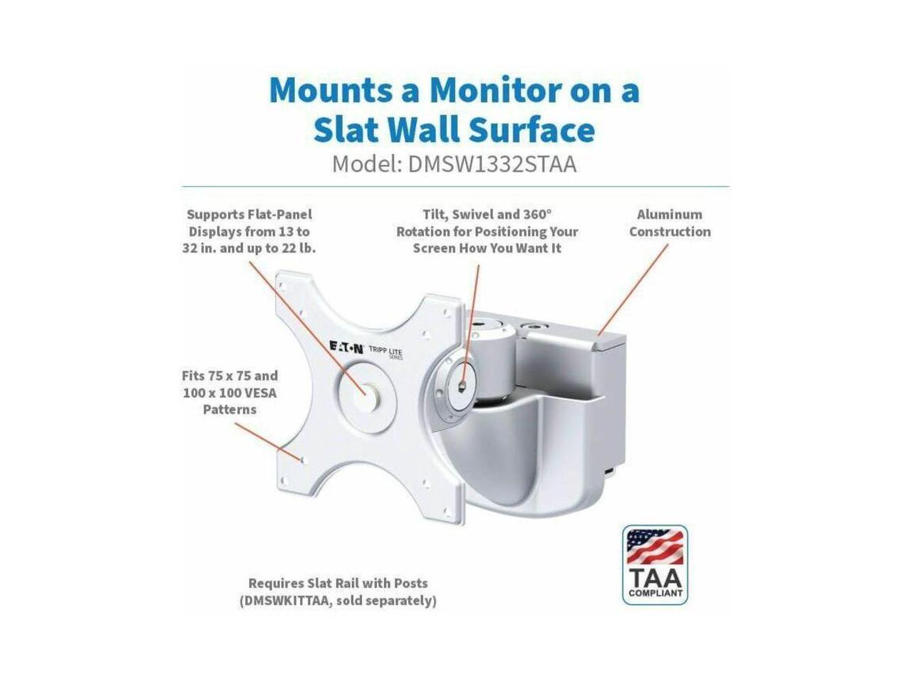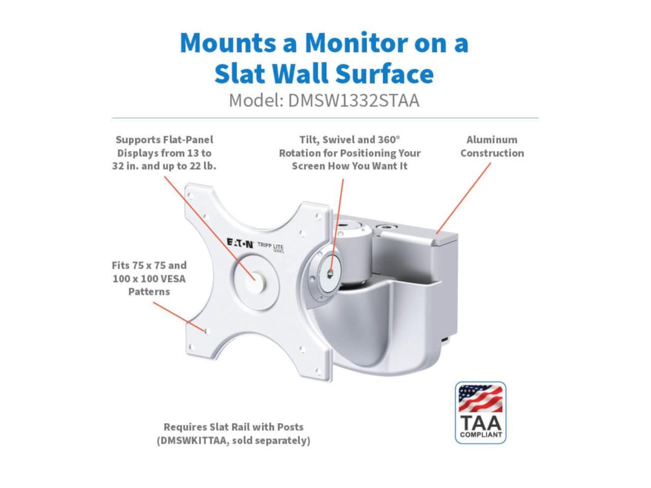 Eaton Tripp Lite Series Monitor Mount for Slat Wall System, 13“ to 32“ Displays, TAA (DMSW1332STAA)