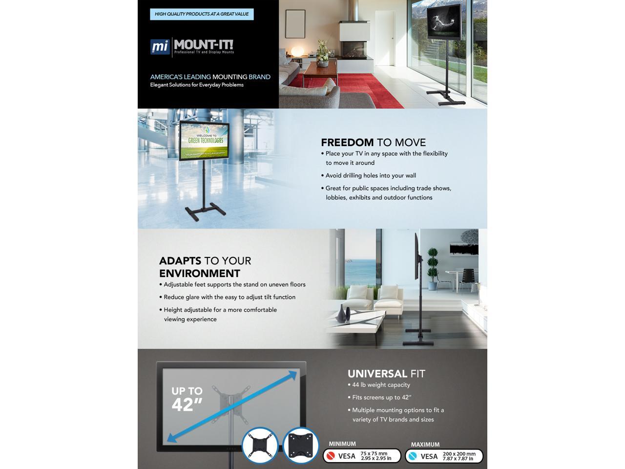 Mount-It! Portable TV Stand Floor Standing | Fits 27-42 inch TVs | VESA 100 and 200