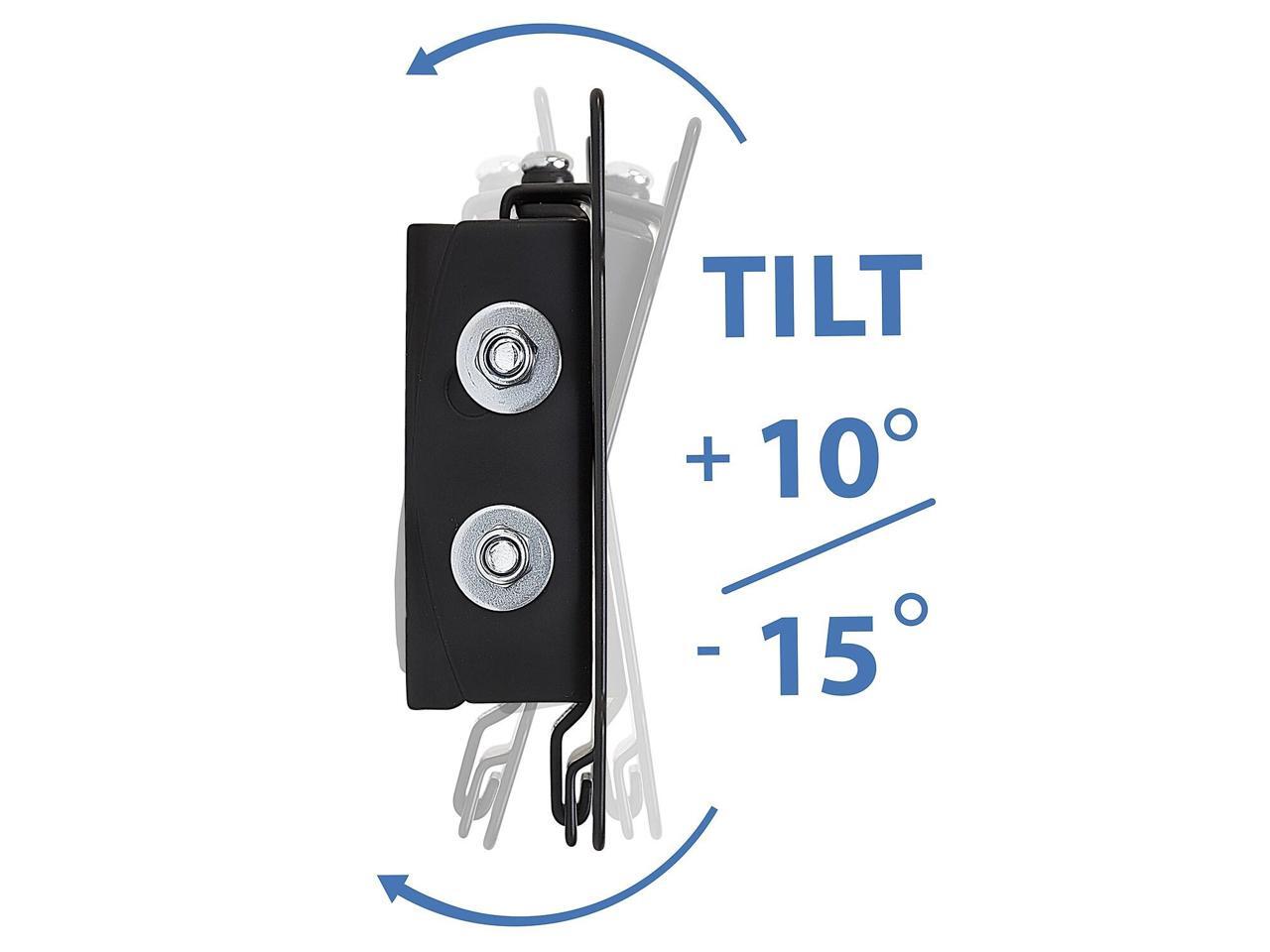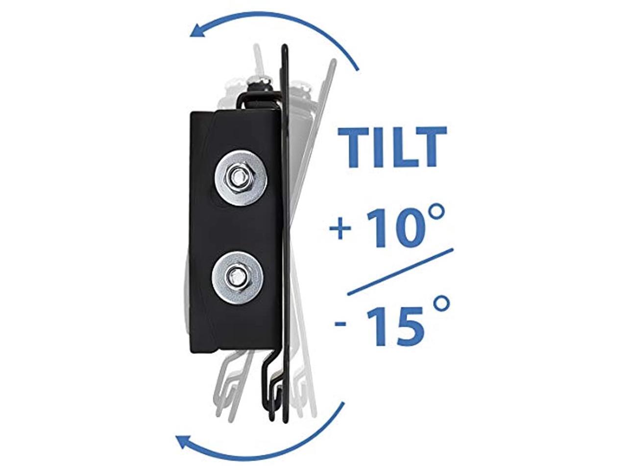 15 Degrees of Tilt. Supported by manufacturer's limited lifetime warranty.