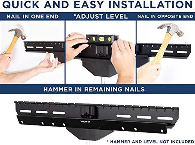 Mount-It! No Stud TV Wall Mount hangs directly to wall and it doesnt require any studs. It safely hangs TVs up to 110lbs on drywall, similar to a picture frame. Ideal for any room, this TV mount frees up space and offers a more aesthetic alternative to traditional placement of a TV on a bulky stand or dresser. It's slim profile sits only 1.2" from the wall for a sleek and appealing look. Great for renters trying to reduce damage to their wall. Features a slim design for a low profile, clean appearance and a 5 degree tilt for optimal viewing angle.