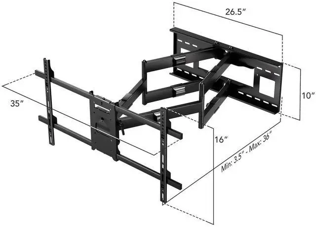 Maximize your TVs positioning and visibility for a better viewing experience. The extra long 36 extension allows you to find the perfect angle in any space. Constructed from high quality steel, the dual arm design can hold up to 176 pounds. The wide wall plate can be mounted using 16 or 24 inch stud spacing.
