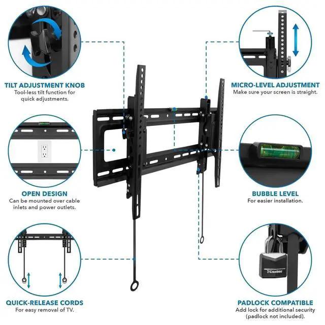 This Mount-It! Premium advanced tilt wall TV mount features a specialty design that enables the TV to extend outward, using the advanced pop-out mechanism, and allows large TVs to maximize the full tilt range that this mount has to offer. Large TVs installed on normal TV wall mounts will hit the wall when tilted, limiting the range. This pop-out design also ensures easier, hassle-free access to the rear cables and ports.